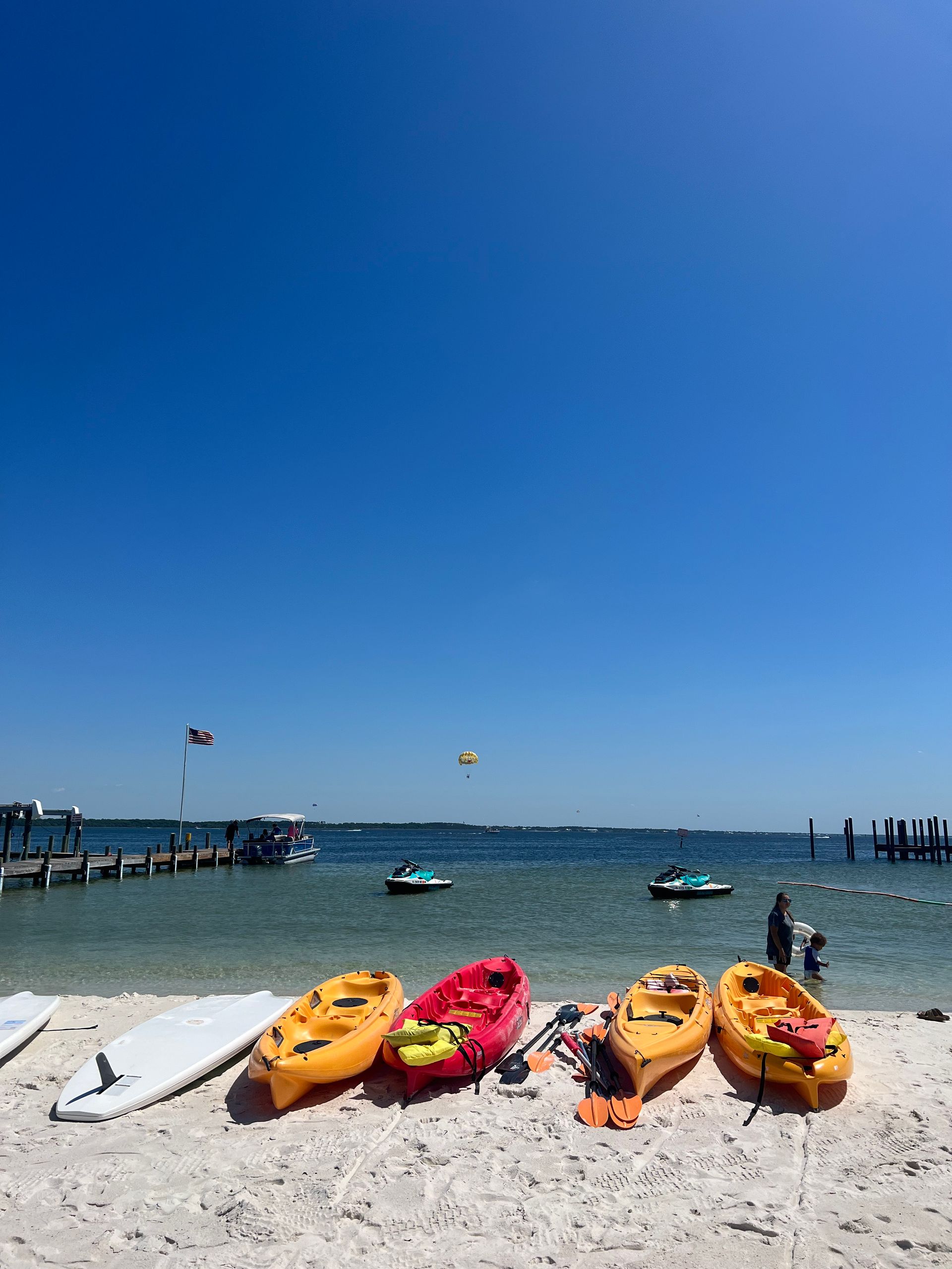 Our beach is a private beach, but to the left and right of us are public protected swimming areas, so the kids and family will be safe as you paddle around. We only charge for the amount of time that you have the board.